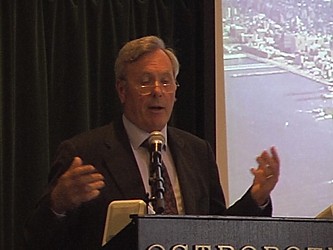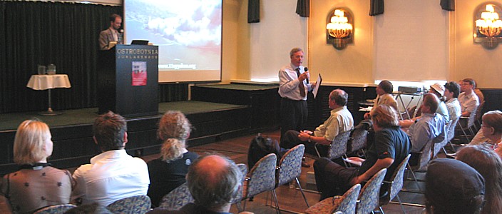 Syyskuun 11:nnen terrori-iskujen vuosipäivän yleisötilaisuus järjestettiin 11.9.2005 Helsingissä Ostrobotnian juhlasalissa. Kuvassa Saksan entinen teknologiaministeri Andreas von Bülow vastailee yleisökysymyksiin