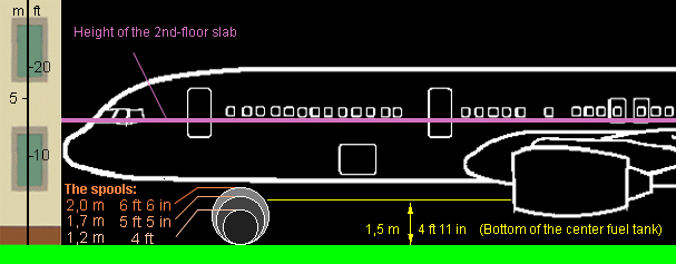 | Conclusion 3: The cable spools show that the builing could not have been hit by an aircraft with dimensions similar to those of a Boeing 757 at a vertical position indicated by the Report. | |
