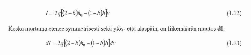 Sama asia kuin äsken koskee romahduksen alkuosaa. Liikemäärän yhtälöstä (1.12) pitäisi matemaattisesti seurata se, että sen muutoksen yhtälön (1.13) jälkiosassa esiintyisi termi -2q(1-b)vdh.